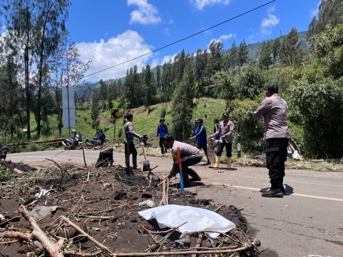 Aksi Cepat Tanggap Polres Probolinggo Tangani Tanah Longsor di Jalur Bromo