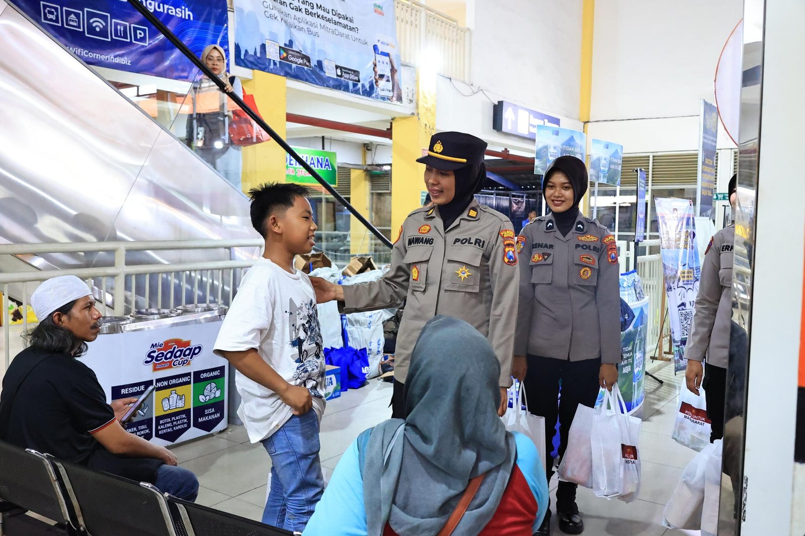Amankan Libur Nataru dan Sapa Humanis Polwan Sidoarjo ke Penumpang Bus di Terminal Purabaya