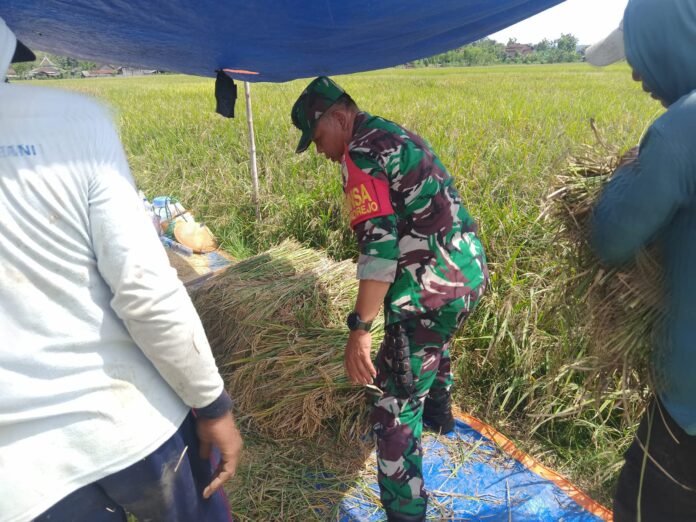 Beritanews 9.id || Blitar – Babinsa Kelurahan Sukorejo Koramil 0808/09 Sutojayan Sertu Hafid Mulyadi, kembali menunjukkan komitmennya dalam mendukung program ketahanan pangan (Hanpangan) dengan terjun langsung membantu proses panen padi di Lingkungan 01 Sukorejo RT. 02 RW. 02 Kelurahan Sukorejo Kecamatan Sutojayan Kabupaten Blitar, Senin (8/12/2025). Kegiatan ini dilakukan di lahan milik Bapak Andi yang merupakan salah satu petani aktif di wilayah tersebut.