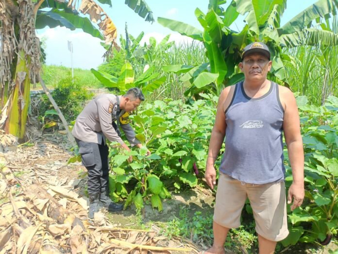Bhabinkamtibmas Desa Keper Tinjau Petani Terong Dukung ketahanan Pangan