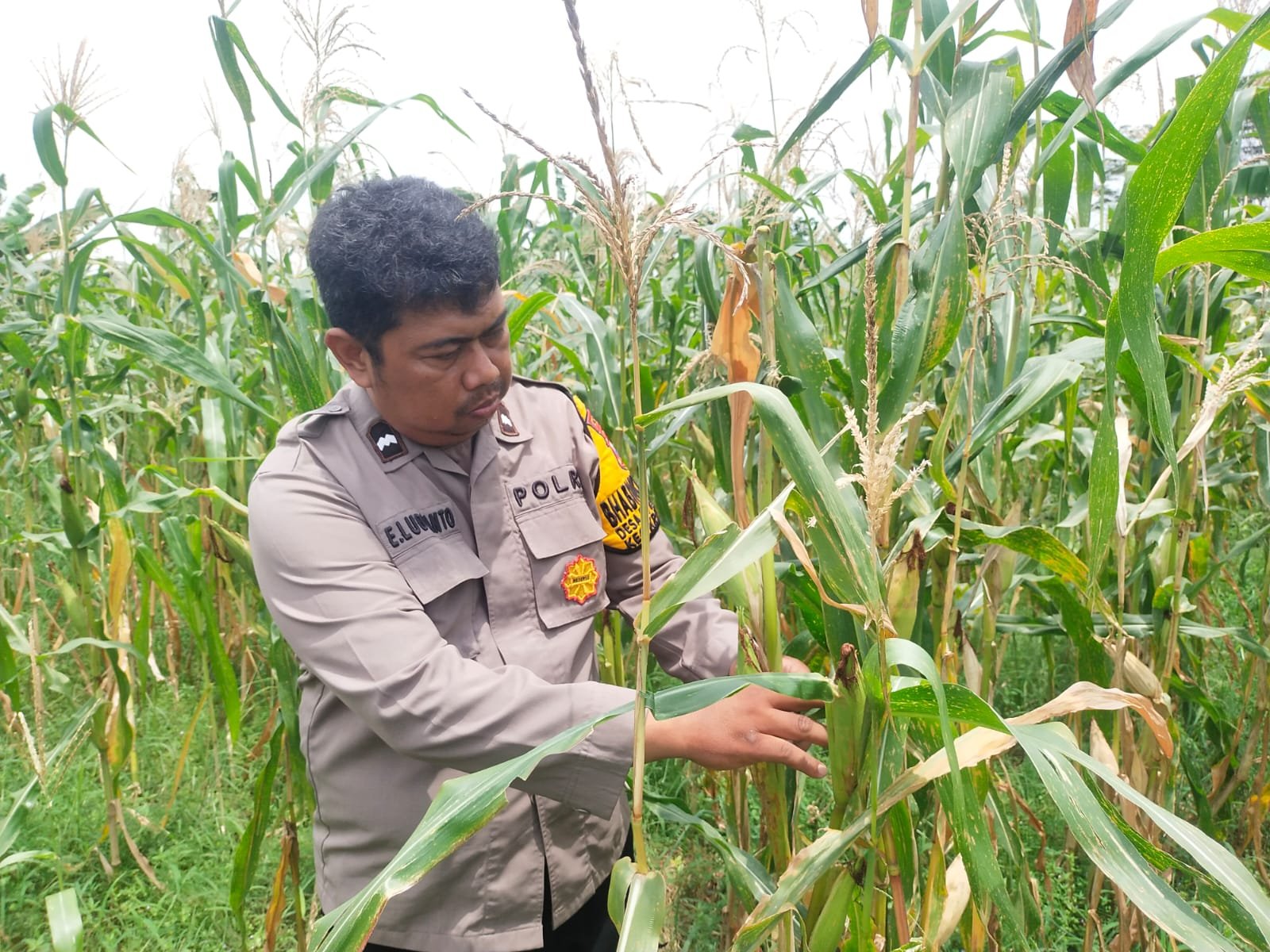 Beritanews9.id || SIDOARJO, Menindak lanjuti instruksi Kapolresta Sidoarjo Kombes Pol Christian Tobing tentang Ketahanan Pangan Polresta Sidoarjo, Bhabin Desa Rejeni memantau dan kroscek petani tanaman jagung,dalam giatnya Aipda Eko mei ludianto memastikan tanaman jagung petani desa binaan nya berkondisi tumbuh subur dan segar segar jagung tersebut, Rabu tanggal 11/6/25.