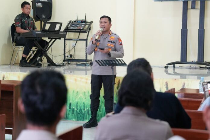 Beritanews9.id || SIDOARJO – Kapolresta Sidoarjo Kombes. Pol. Christian Tobing bersama anggota yang beragama Kristen mengikuti kegiatan Binrohtal di Gereja Oikumene Polresta Sidoarjo, Jumat (27/3/2026).