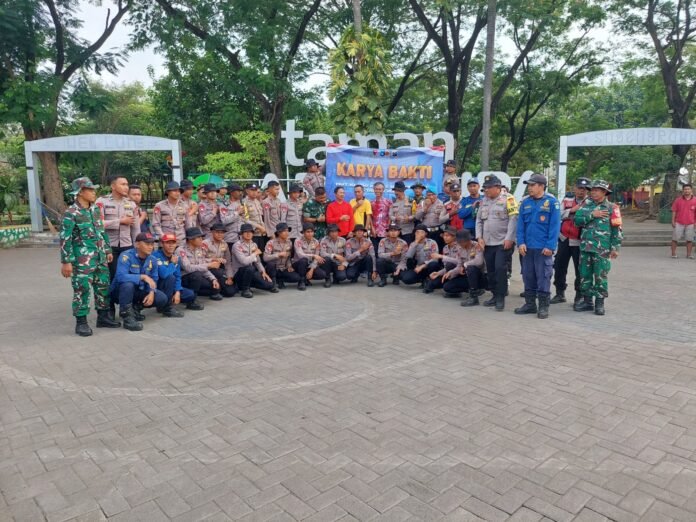 Kerja bakti dimulai sejak pagi hari, melibatkan personel Brimob, anggota Koramil Krian, dan personel Polsek Krian. Mereka bersama-sama membersihkan area taman, memangkas rumput liar, serta menata kembali fasilitas umum agar Taman Abirupa terlihat lebih indah dan nyaman bagi warga.