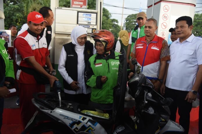 Beritanews9.id || SIDOARJO – Sebanyak 200 pengemudi ojek online (ojol) di Kabupaten Sidoarjo menerima bantuan bahan bakar minyak (BBM) gratis dari Gubernur Jawa Timur, Hj. Khofifah Indar Parawansa, Rabu (8/4). Kegiatan tersebut berlangsung di SPBU Albatros Sedati dan dihadiri langsung oleh Bupati Sidoarjo H. Subandi yang turut mendampingi penyerahan bantuan.