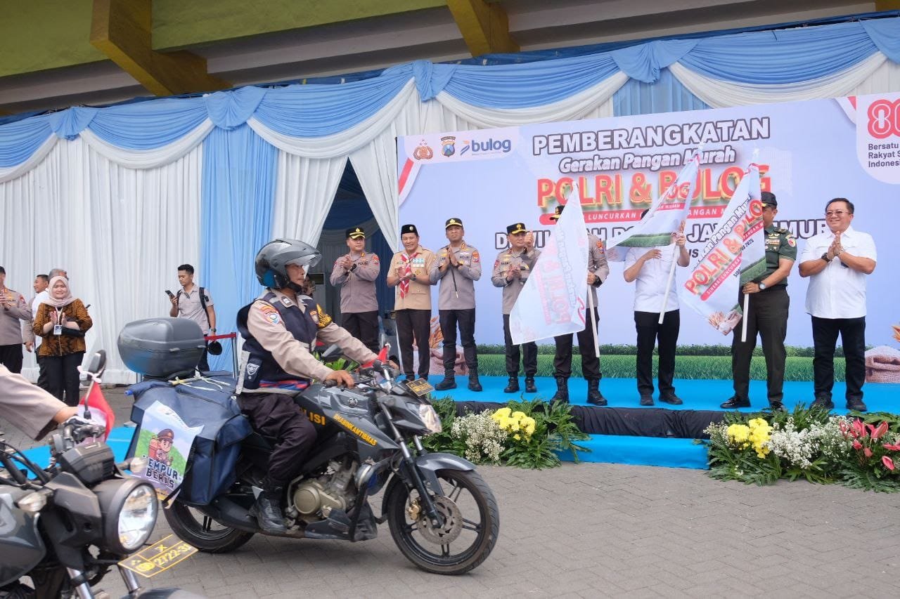 Acara dibuka dengan pelepasan pemberangkatan GPM Polri dan Bulog, yang bersinergi untuk menyalurkan kebutuhan pokok murah di wilayah Polda Jawa Timur.