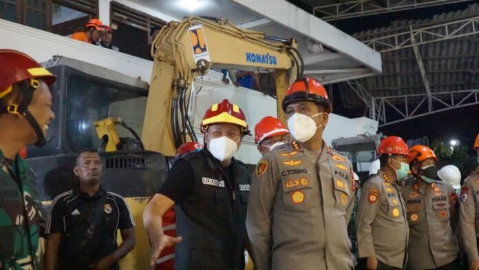 Beritanews9.id || SIDOARJO – Bupati Sidoarjo H.Subandi bersama Gubernur Jawa Timur Khofifah Indar Parawansa, Kapolda Jawa Timur serta Polresta Sidoarjo dan jajaran terkait terus melakukan upaya evakuasi pasca runtuhnya bangunan Pondok Pesantren Al Khoziny. Proses evakuasi melibatkan personel gabungan dengan alat berat, ditargetkan berlangsung efektif dalam waktu 1×24 jam.