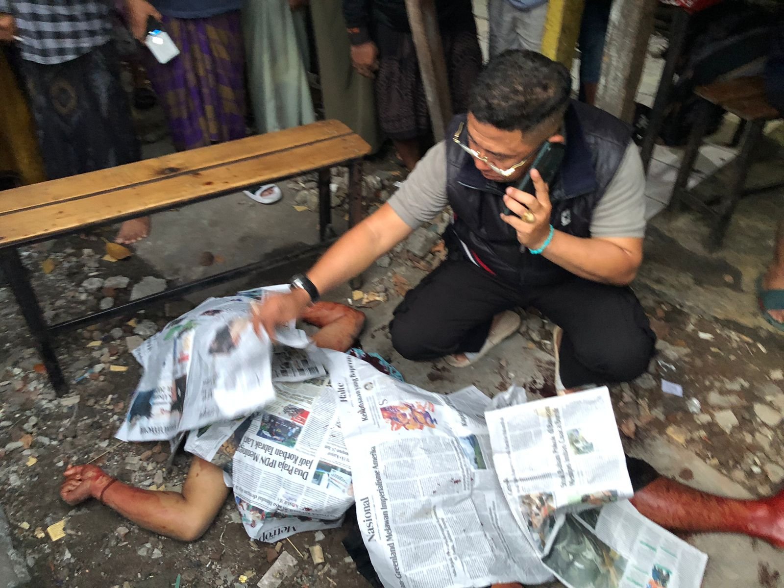 Dibacok di Bagian Perut Seorang Pria Tewas Bersimbah Darah di depan Warkop Coffe Black