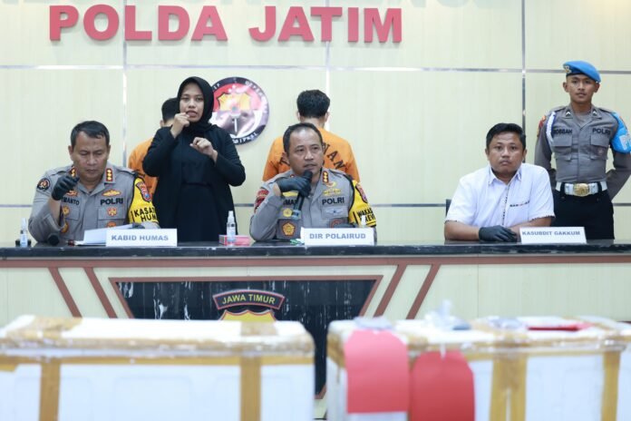 Beritanews 9.id || SURABAYA – Subdit Gakkum Direktorat Kepolisian Perairan dan Udara (Ditpolairud) Polda Jawa Timur, meringkus dua tersangka jual beli Benih Bening Lobster (BBL) tanpa dilengkapi ijin sah di wilayah pesisir laut desa Kemunduran, Kecamatan Wongsorejo, Kabupaten Banyuwangi. Jum’at (26/7/2024)
