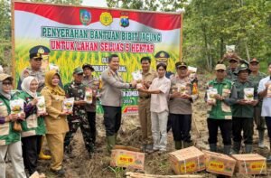 JOMBANG, Beritanews9.id || Jombang – Dalam rangka mendukung program swasembada pangan nasional, Kapolres Jombang AKBP Ardi Kurniawan, S.H., S.I.K., CPHR menyerahkan bantuan 1 Kwintal bibit jagung jenis Bisi-18 untuk lahan seluas 5 hektare kepada Gabungan Kelompok Tani (Gapoktan) Desa Katemas, Kecamatan Kudu, Kabupaten Jombang, Selasa (24/2/2026).