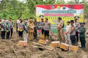 “Kami dari Polres Jombang hadir untuk memberikan dukungan dan semangat kepada para petani. Program penanaman jagung ini bukan hanya kegiatan seremonial, tetapi komitmen bersama untuk mewujudkan swasembada pangan. Jika kita konsisten dan bersinergi, hasilnya akan mampu meningkatkan kesejahteraan petani sekaligus memperkuat ketahanan pangan nasional,” ujar AKBP Ardi Kurniawan.
