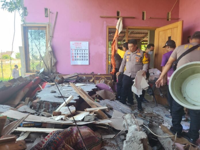 Dengan penuh semangat gotong royong, aparat TNI–Polri dan masyarakat bahu membahu mengangkat material bangunan, merapikan sisa-sisa reruntuhan, serta membersihkan area sekitar rumah agar kembali aman dan nyaman.