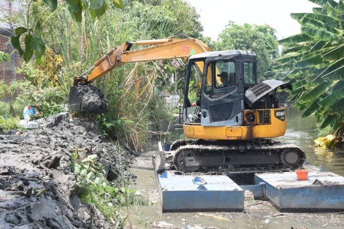 “Semoga nanti dalam waktu satu bulan kedepan, untuk saluran Tekukpenjalin di Afvoer Kedungpeluk ini ternormalisasi dengan baik,” ujar Kepala Dinas PU Bina Marga dan SDA Sidoarjo Eko Dwi Saptono saat memantau pengerjaan normalisasi Afvoer Kedungpeluk, Minggu, (19/10).
