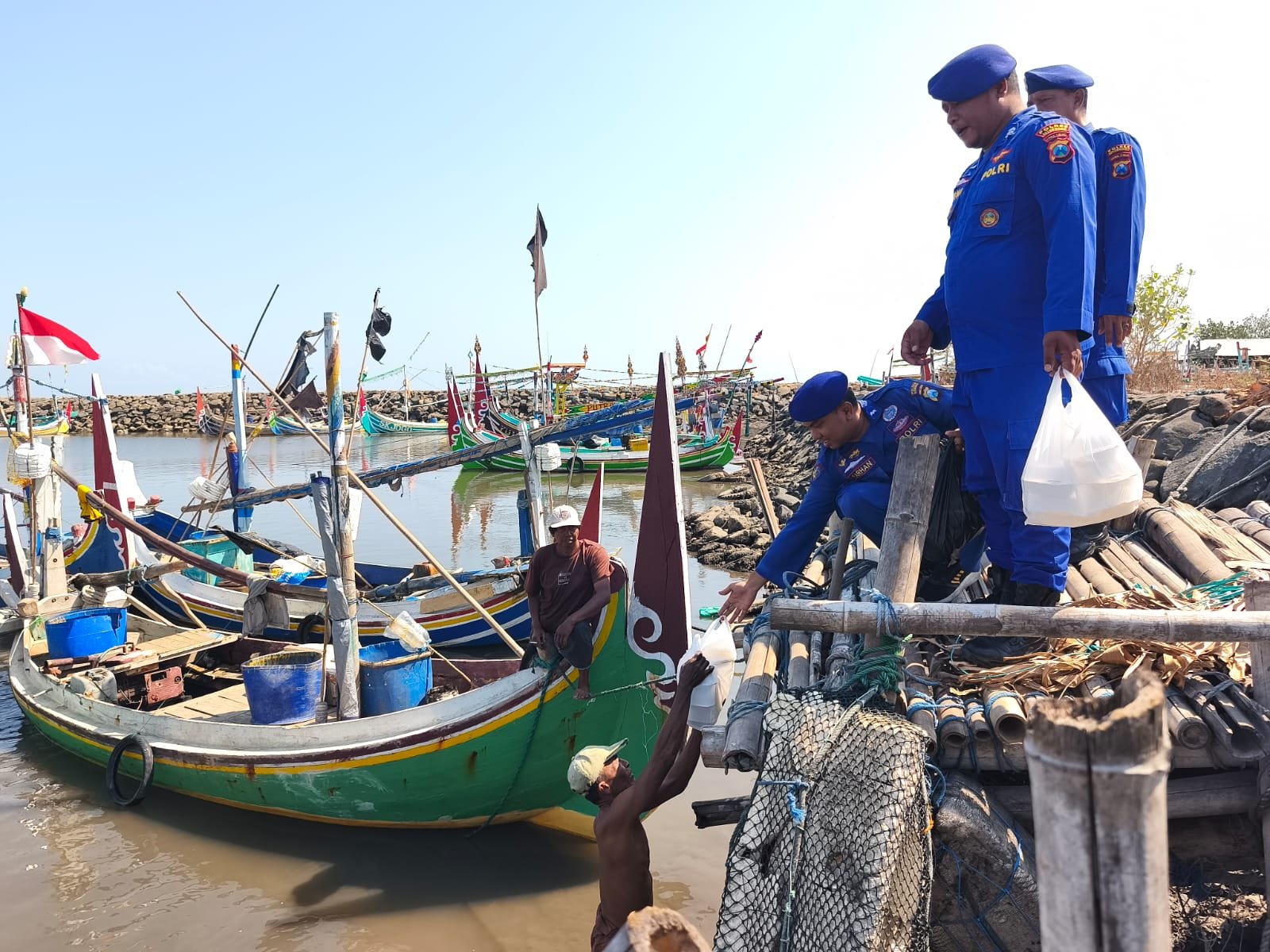 Harkamtibmas : Patroli Pesisir Polres Situbondo Berbagi Nasi Bungkus untuk Nelayan
