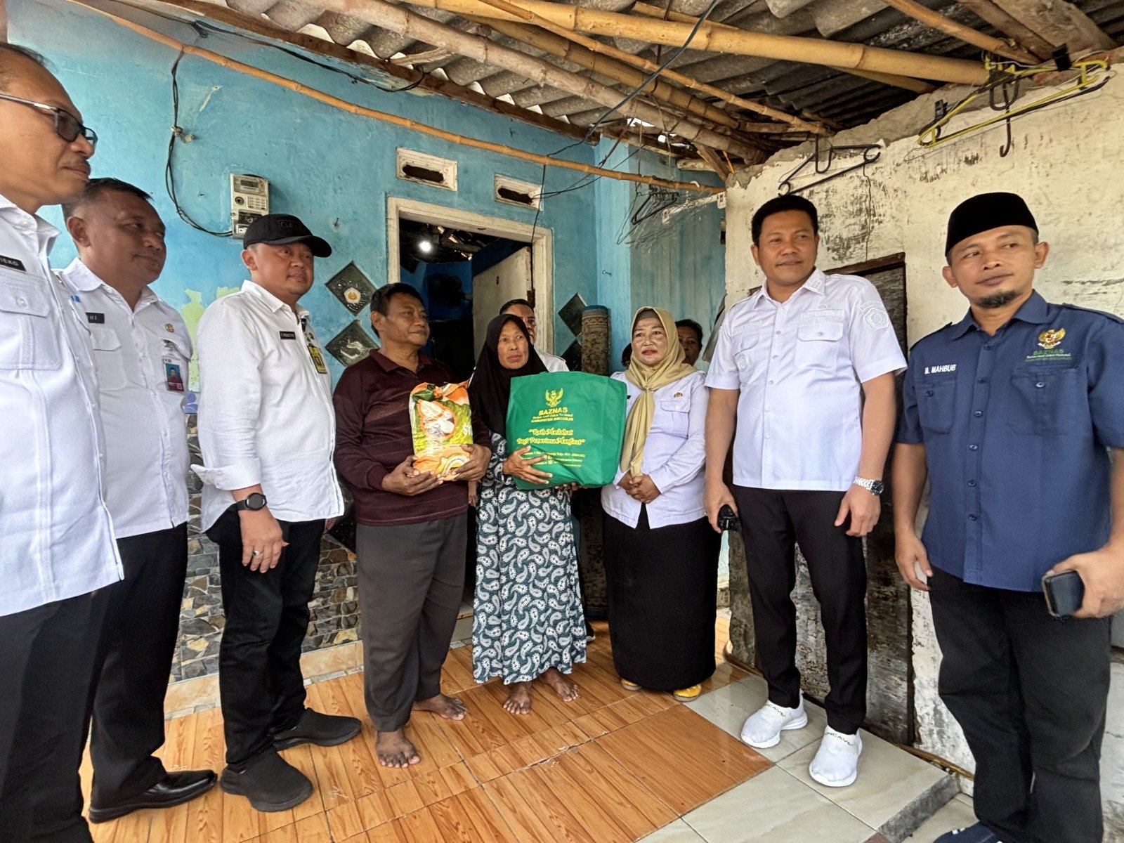 “Rumah ini kalau hujan banjir. Kalau tidak segera diperbaiki, kasihan keluarga yang tinggal di sini,” pintanya kepada Baznas yang turut mendampingi.