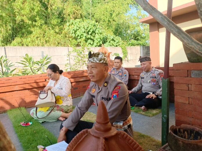 Beritanews9.id || SIDOARJO – Anggota Polresta Sidoarjo serta Polsek jajaran yang beragama Hindu beserta keluarga dan sejumlah umat di sekitar Mako Polresta Sidoarjo, melaksanakan ibadah Hari Suci Tilem di Pura Kertha Bumi Bhayangkara, Sidoarjo, Kamis (6/6/2024).