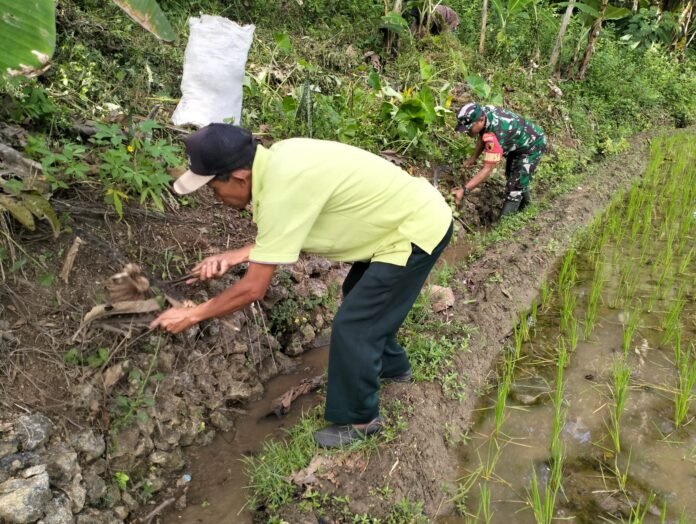 Beritanews 9.id || Blitar – Babinsa Desa Plandirejo Koramil 0808/17 Bakung Serda Supriyadi bersama warga Dusun Ngadirejo melaksanakan kegiatan gotong royong membersihkan saluran irigasi yang mengaliri area persawahan setempat, di Dusun Ngadirejo Desa Plandirejo Kecamatan Bakung Kabupaten Blitar, Jumat (28/11/2025). Kegiatan ini dilakukan sebagai upaya menjaga kelancaran distribusi air guna meningkatkan hasil pertanian masyarakat.