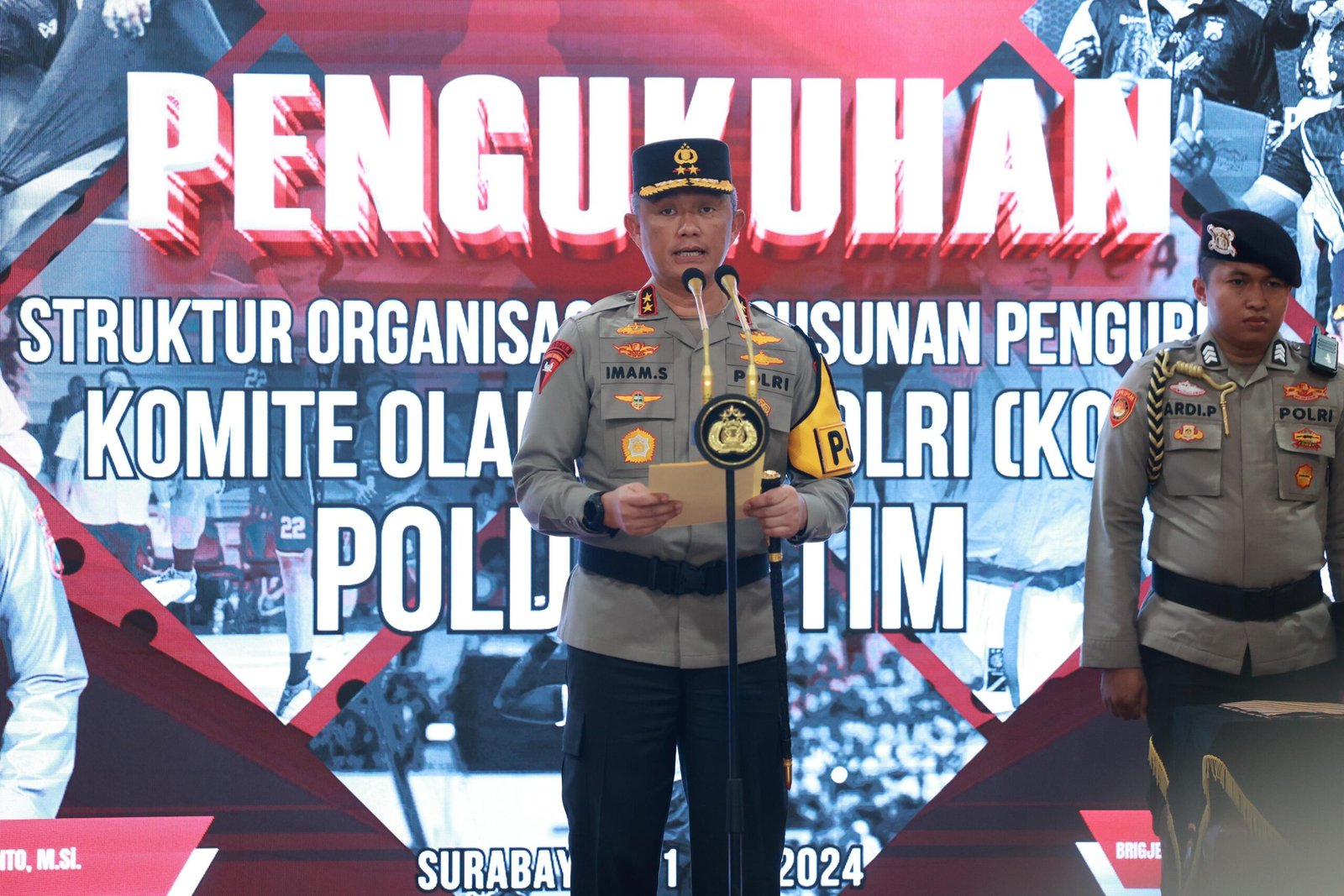 “Saya berharap melalui komite Olahraga Polri, khususnya dilingkungan Polda Jatim, diharapkan dapat meningkatkan kualitas SDM yang unggul dan berprestasi,”ungkap Irjen Imam Sugianto.