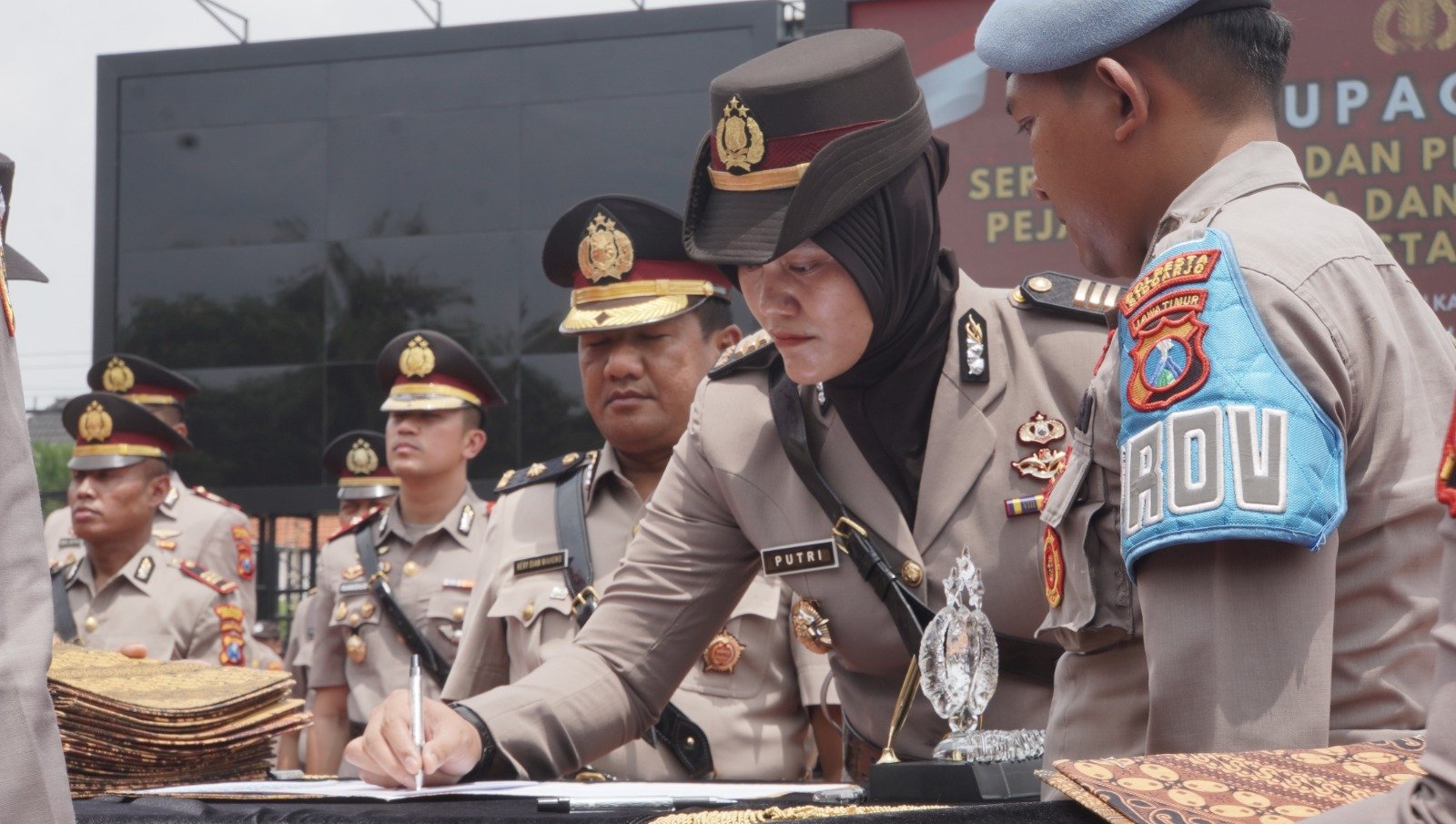 Pejabat utama Polresta Sidoarjo yang melakukan sertijab di Lapangan Apel Mako Polresta Sidoarjo, antara lain Kabagren Kompol Ria Anggraini yang menduduki jabatan Wakapolres Mojokerto Kota digantikan mantan Kasiwas Polresta Sidoarjo AKP Nawang Dwi Agustina.