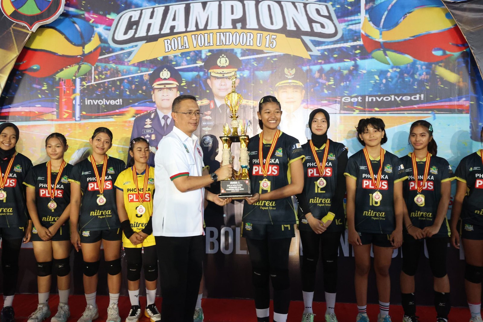 Piala juara I klub Putri diserahkan oleh Ketua Umum Persatuan Bola Voli Seluruh Indonesia (PBVSI) Pengprov Jawa Timur, Irjen. Pol. Imam Sugianto M.Si.