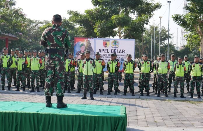 Beritanews 9.id || Blitar – Dalam rangka kesiapan pengamanan Pilkada serentak Tahun 2024 Kota dan Kabupaten Blitar, Kodim 0808 pagi ini melaksanakan apel gelar, bertempat di depan Halaman Pos Ramil Kepanjenkidul Koramil 0808/01 Sukorejo Kel. Bendo Kec. Sukorejo Kota Blitar, Senin (29/7/2024).