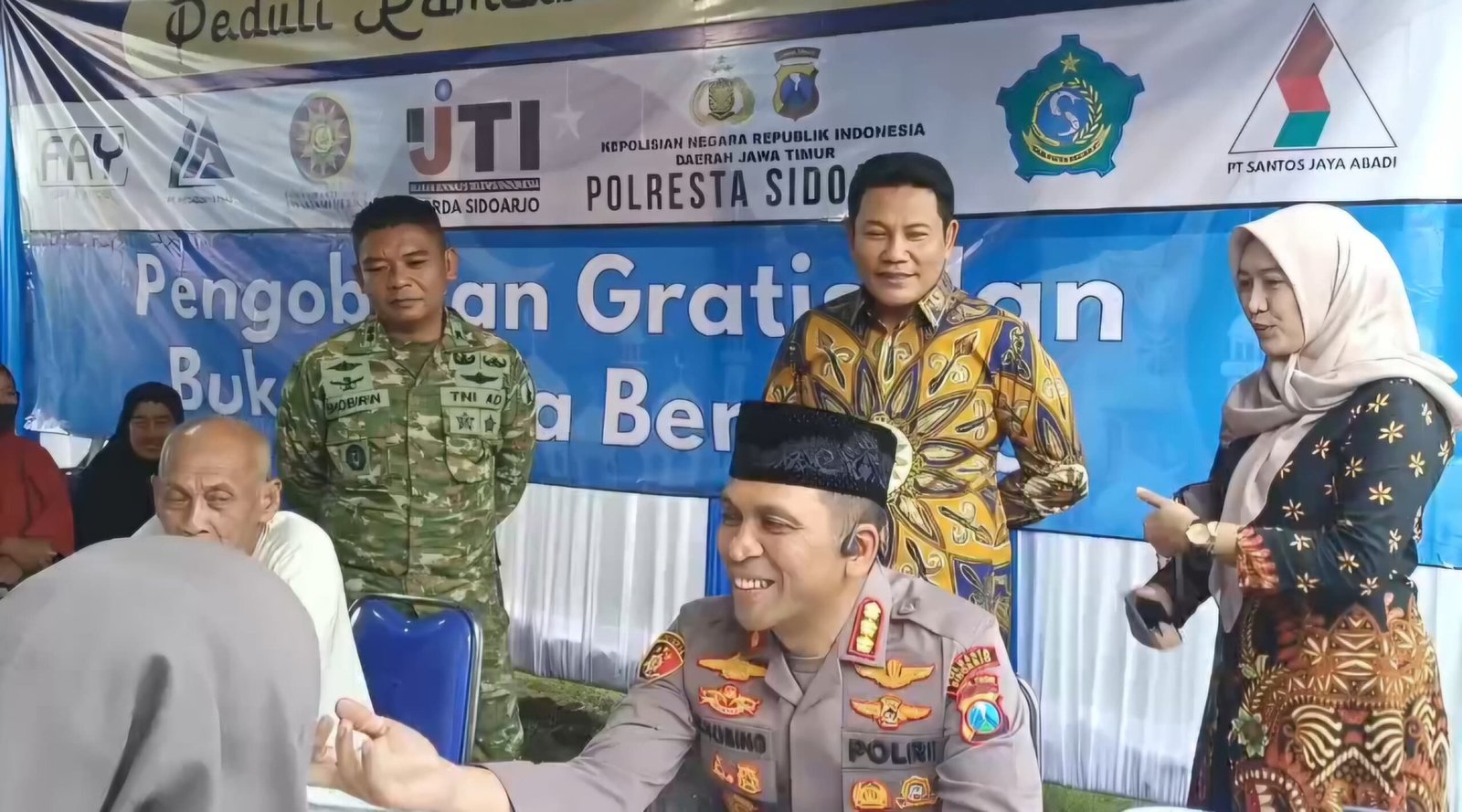 Menghadirkan tim medis dan Dokter dari RS Assakinah Medika, Warga bergantian melakukan Pengobatan Gratis di lokasi kegiatan. Bahkan Bupati Sidoarjo, Kapolresta Sidoarjo, dan Dandim 0816 Sidoarjo ikut langsung Cek Kesehatan yang digelar di halaman Sekretariat IJTI Sidoarjo.