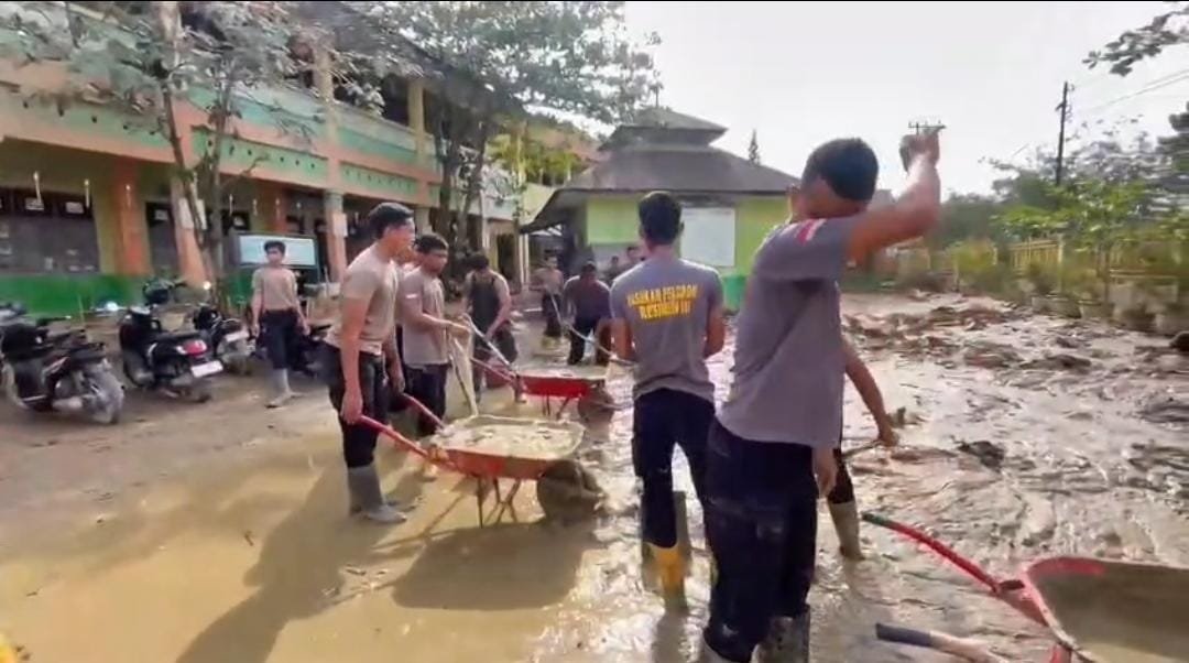 Kegiatan pembersihan dilakukan untuk memastikan lingkungan sekolah kembali bersih dan layak digunakan setelah terdampak banjir.