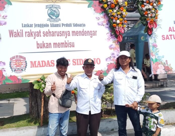 Beritanews9.id || SIDOARJO – Pemandangan tak biasa terlihat di depan Gedung DPRD Kabupaten Sidoarjo pada Senin (9/3/2026). Puluhan karangan bunga bernada satir dan duka cita berjajar rapi, dikirimkan oleh Aliansi Peduli Sidoarjo atau yang populer dengan sebutan Laskar Jenggolo. Aksi ini merupakan bentuk protes keras terhadap dugaan mampetnya fungsi legislatif dan isu miring mengenai aliran dana siluman yang menerpa integritas organisasi mereka.