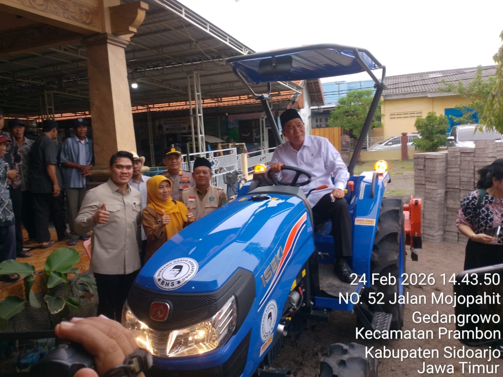 Beritanews9.id || SIDOARJO – Dalam upaya mendorong modernisasi sektor pertanian, Anggota DPR RI, Bambang Haryo Soekartono (BHS), menyerahkan bantuan alat dan mesin pertanian (alsintan) berupa traktor roda 4 kepada Kelompok Tani (Poktan) Sejahtera, Desa Gedang Rowo, Kecamatan Prambon, Kabupaten Sidoarjo.