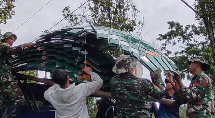 ‎Proses pemasangan kubah dilakukan dengan penuh kehati-hatian dan gotong royong. Sejumlah prajurit TNI bekerja sama dengan warga menaikkan kubah menggunakan tangga. Sementara di bagian bawah, warga lain ikut membantu menyiapkan bagian yang lain serta memastikan setiap tahap berjalan aman dan lancar. Suasana kerja penuh semangat dan canda tawa membuat kegiatan tersebut terasa hangat di tengah teriknya sinar matahari.