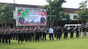 Apel tersebut dipimpin langsung oleh Kapolres Jombang, AKBP Ardi Kurniawan, S.H., S.I.K., CPHR, dan melibatkan personel gabungan yang terdiri dari Satgas Paguyuban Pencak Silat Jombang Beriman (PSJB), Kompi Dalmas Polres Jombang, serta sejumlah organisasi kemasyarakatan (ormas).
