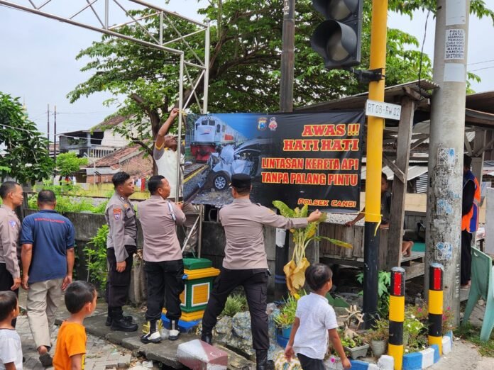 Seperti dilakukan Kapolsek Candi Polresta Sidoarjo Kompol Eka Anggriana bersama anggotanya turun langsung memasang himbauan tersebut pada Kamis (27/3/2025). Antara lain, di pintu perlintasan Kereta Api tanpa palang Desa Gelam, Desa Tenggulunan dan Desa Sumokali.