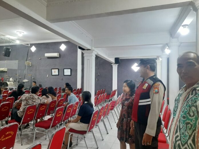 Selain itu, personel yang siaga di gereja juga memberikan ajakan untuk menjaga kerukunan dalam menghadapi Pilkada serentak 2024.(Ali news)