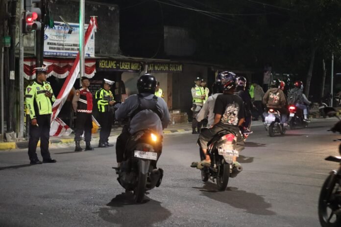 Polres Madiun Kota melakukan penyekatan jalur di perbatasan Kota – Kabupaten Madiun Tepatnya di Perempatan Manisrejo Kota Madiun.Sabtu (27/7/2024) malam.