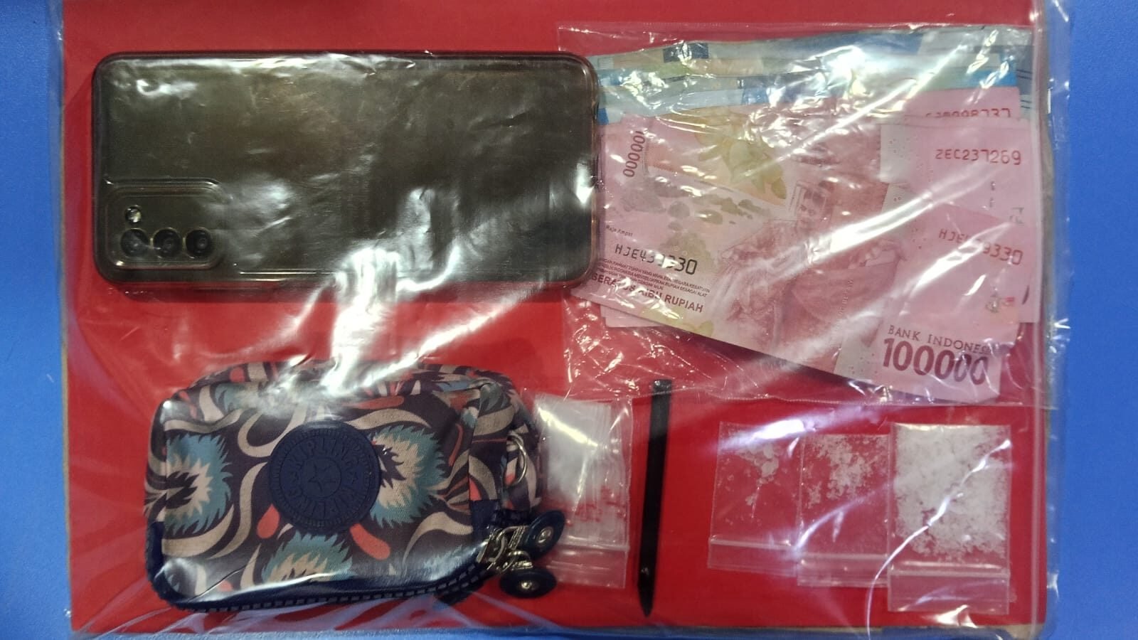 Dalam penangkapan tersebut, petugas Satresnarkoba Polres Pelabuhan Tanjung Perak turut mengamankan sejumlah barang bukti, di antaranya tiga klip plastik berisi sabu dengan berat bruto total sekitar 4,02 gram, satu bandel plastik klip kosong, satu serok sabu dari plastik berwarna hitam, uang tunai hasil penjualan sebesar Rp500.000, satu unit telepon seluler, serta satu tas dompet berwarna ungu.