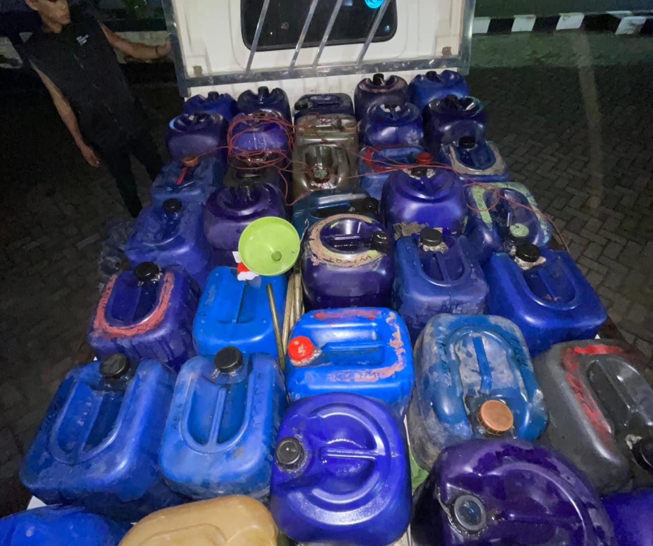 Selanjutkan, pelaku SL mengambil BBM jenis Bio solar di Desa Kalianget sebanyak 17 jurigen kemudian di Desa Demung sebanyak 18 jurigen.