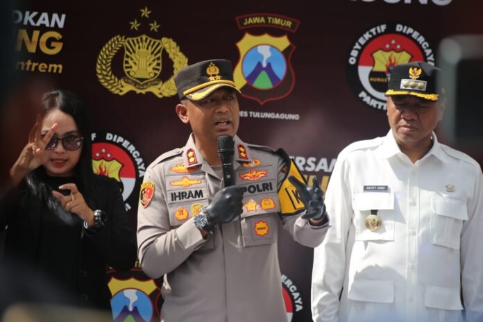 Pengungkapan kasus tersebut disampaikan langsung oleh Kapolres Tulungagung AKBP Dr. Ihram Kustarto kepada awak media usai kegiatan apel gelar pasukan Operasi Ketupat Semeru 2026 yang digelar di halaman Kantor Pemerintah Kabupaten Tulungagung, Kamis (12/03/2026).
