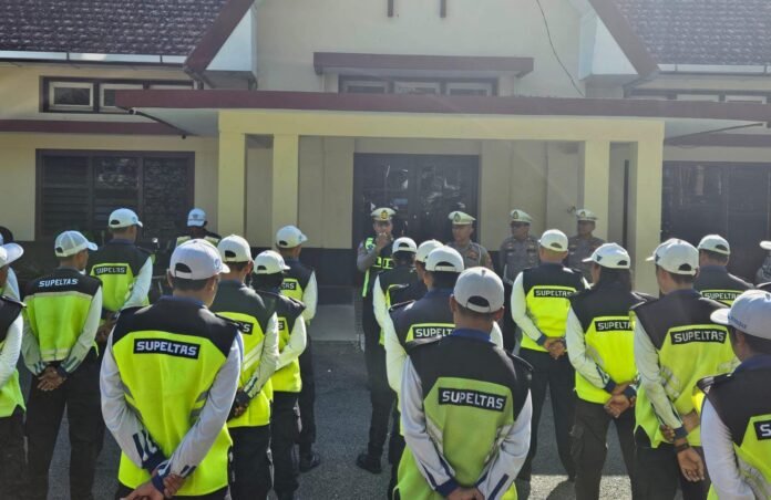 memberi arahan para personel Supeltas yang terploting untuk melaksanakan tugas pengamanan jalur dengan sebaik-baiknya.