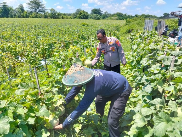 Pada Selasa (14/4/2026), Kapolsek Prambon AKP Sugiono bersama Bhabinkamtibmas Desa Wonoplintahan Aiptu Satuji melaksanakan pengecekan dan kontrol lahan tanaman melon di wilayah Desa Wonoplintahan, Kecamatan Prambon, Kabupaten Sidoarjo.