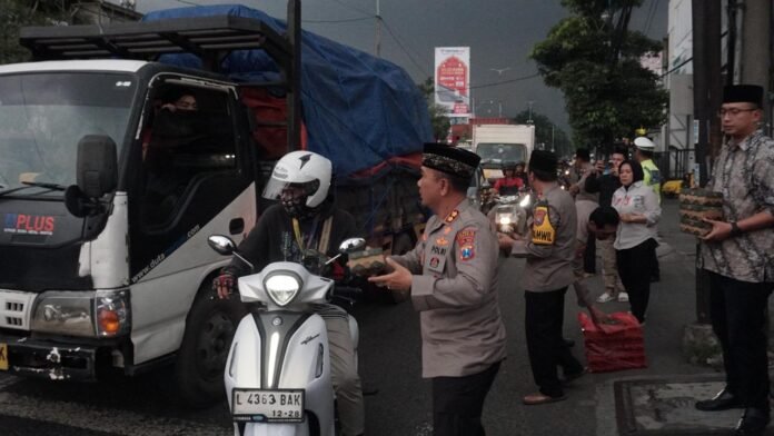 Beritanews9.id || SIDOARJO – Jelang waktu berbuka puasa, Jumat (21/3/2025), Polresta Sidoarjo membagikan takjil kepada pengendara yang berhenti di traffic light perempatan Gedangan. Pada para pengendara polisi juga menyampaikan himbauan tertib berlalu lintas.