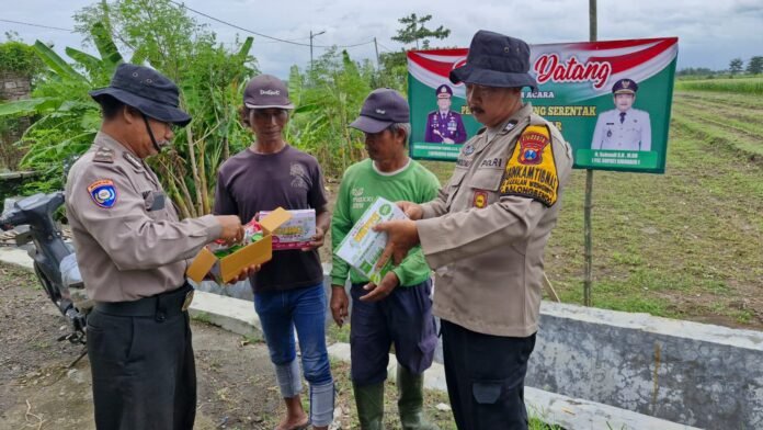 Beritanews9.id || SIDOARJO – Kapolsek Balongbendo AKP Sugeng Sulistiyono bersama anggota dan Bhabinkamtibmas Desa Bakungtemenggungan menyerahkan pupuk kepada kelompok tani setempat, Kamis (30/1/2025).