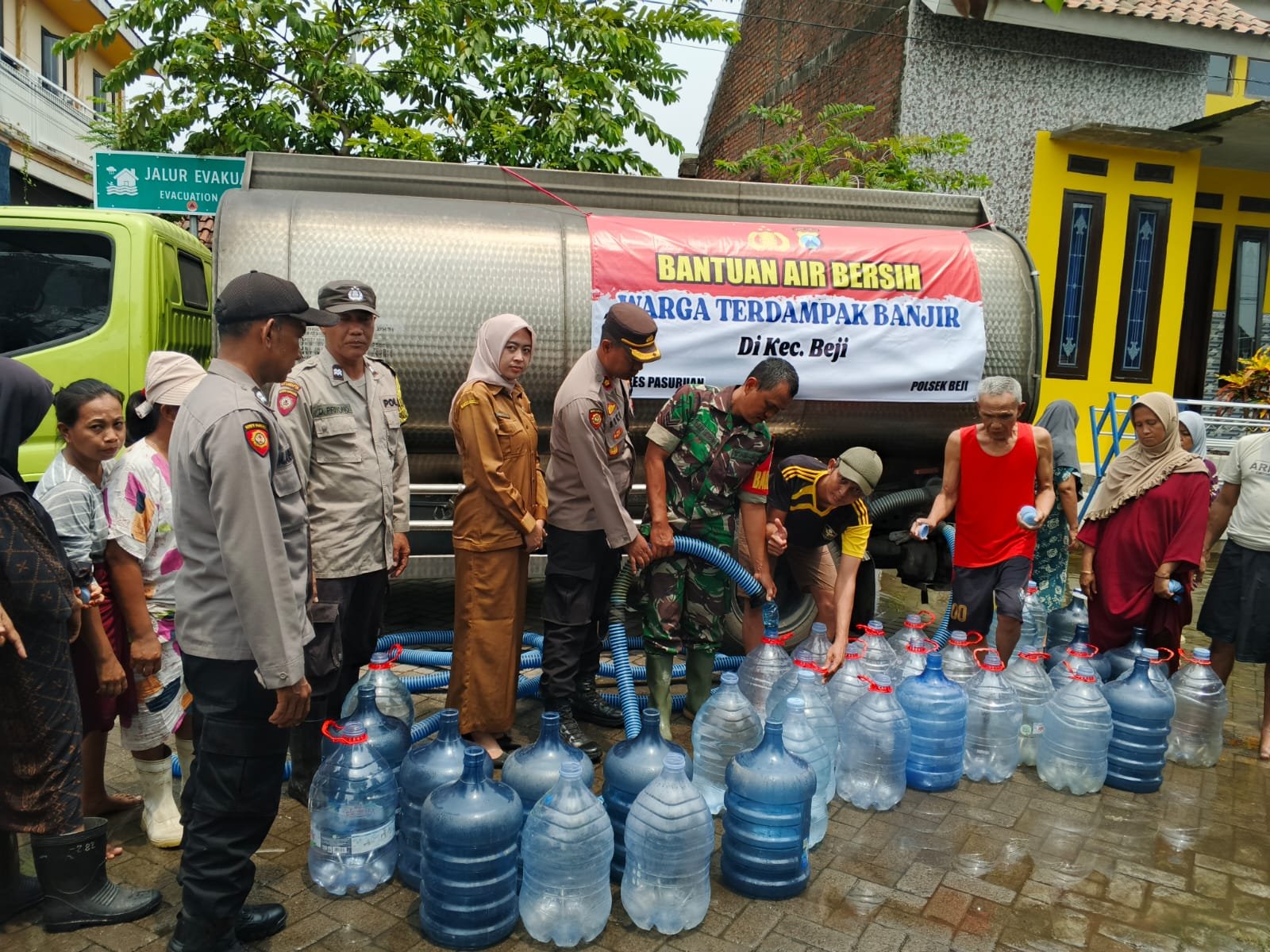 Beritanews9.id || PASURUAN — Polsek Beji bersama Pemerintah Desa Kedungringin menyalurkan bantuan sosial berupa air bersih kepada warga yang terdampak banjir di Dusun Balungrejo, Desa Kedungringin, Kecamatan Beji, Senin (24/11/2025) pagi.