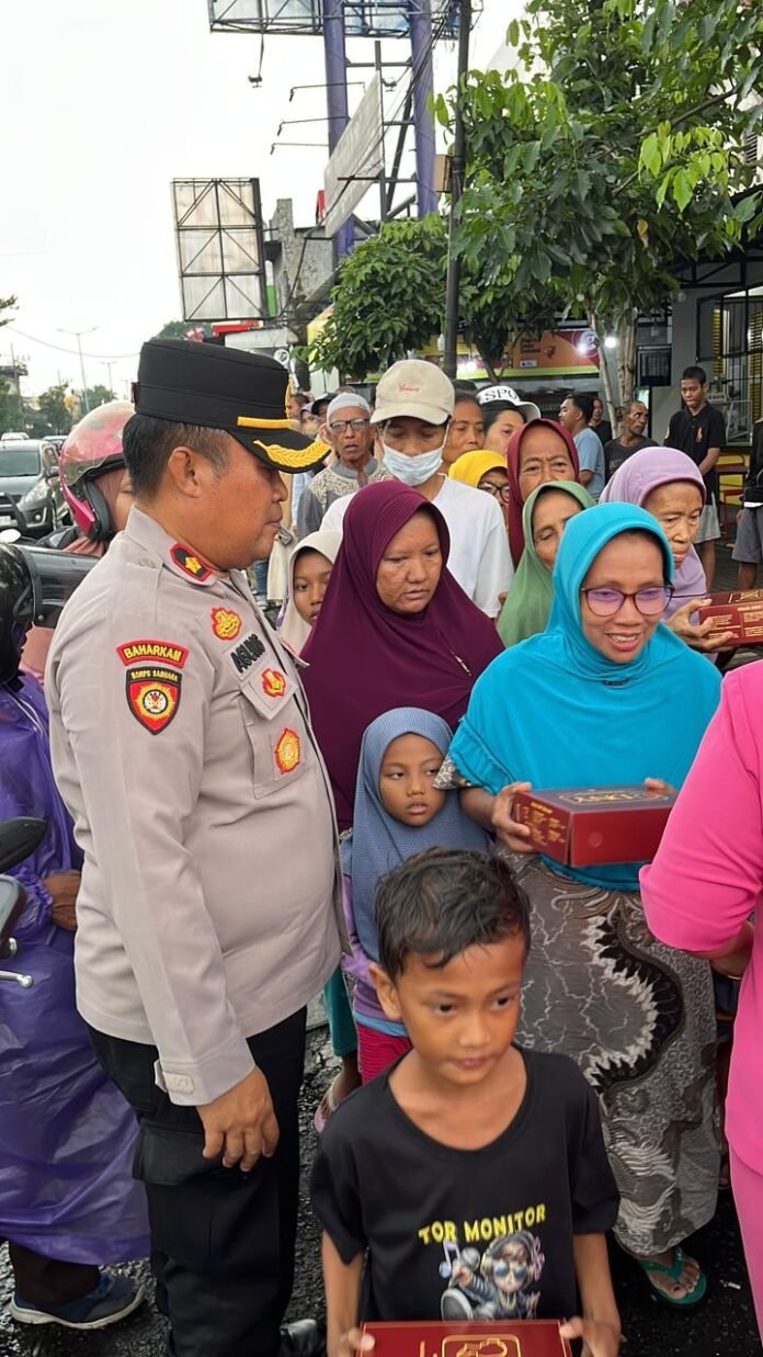 “Bagi takjil ini merupakan wujud kepedulian Polri terhadap masyarakat, khususnya bagi mereka yang masih berada di perjalanan saat waktu berbuka puasa tiba,” ujar Kompol A. Agung GPW. Selain membagikan makanan berbuka, personel juga menyampaikan pesan-pesan kamtibmas agar situasi wilayah tetap aman dan kondusif selama Ramadhan.