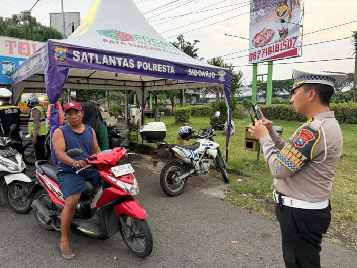 Beritanews9.id || SIDOARJO – Satuan Lalu Lintas Polresta Sidoarjo menindak ratusan pelanggar melalui sistem Electronic Traffic Law Enforcement (ETLE) Handheld pada Senin (27/4/2026). Penindakan dilakukan secara mobile di sejumlah titik rawan pelanggaran dan kecelakaan di wilayah Kabupaten Sidoarjo.