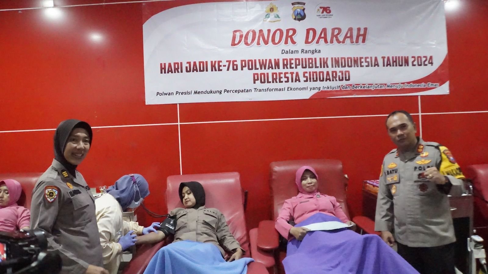 Sambut HUT Ke-76, Polwan Polresta Sidoarjo Donorkan Darah