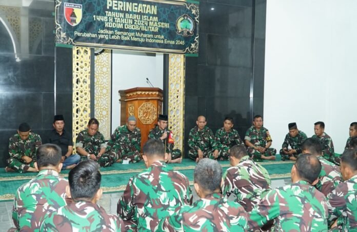 Beritanews 9.id || Blitar – Dalam rangka menyambut Tahun Baru Islam 1446 H Tahun 2024 M, Kodim 0808/Blitar malam ini melaksanakan kegiatan doa bersama, bertempat di Masjid Al Ikhlas Kodim 0808, yang berlokasi di Jl.A.Yani No.06, Kelurahan/Kecamatan Kepanjenkidul Kota Blitar, Sabtu malam (6/7/2024).