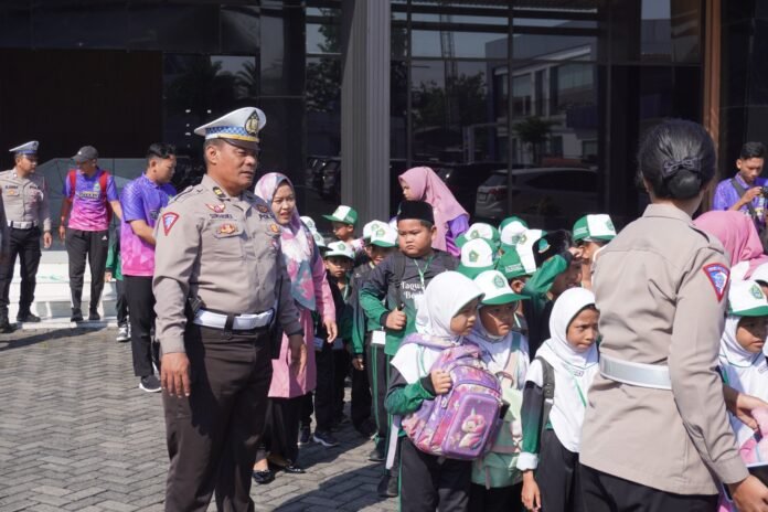 Beritanews9.id || SIDOARJO – Menerima kunjungan siswa-siswi Madrasah Ibdtidaiyah (MI) Bumi Sholawat, Rabu (5/6/2024) di Polresta Sidoarjo, anggota Satlantas Polresta Sidoarjo dengan riang mengajak berkeliling mako.