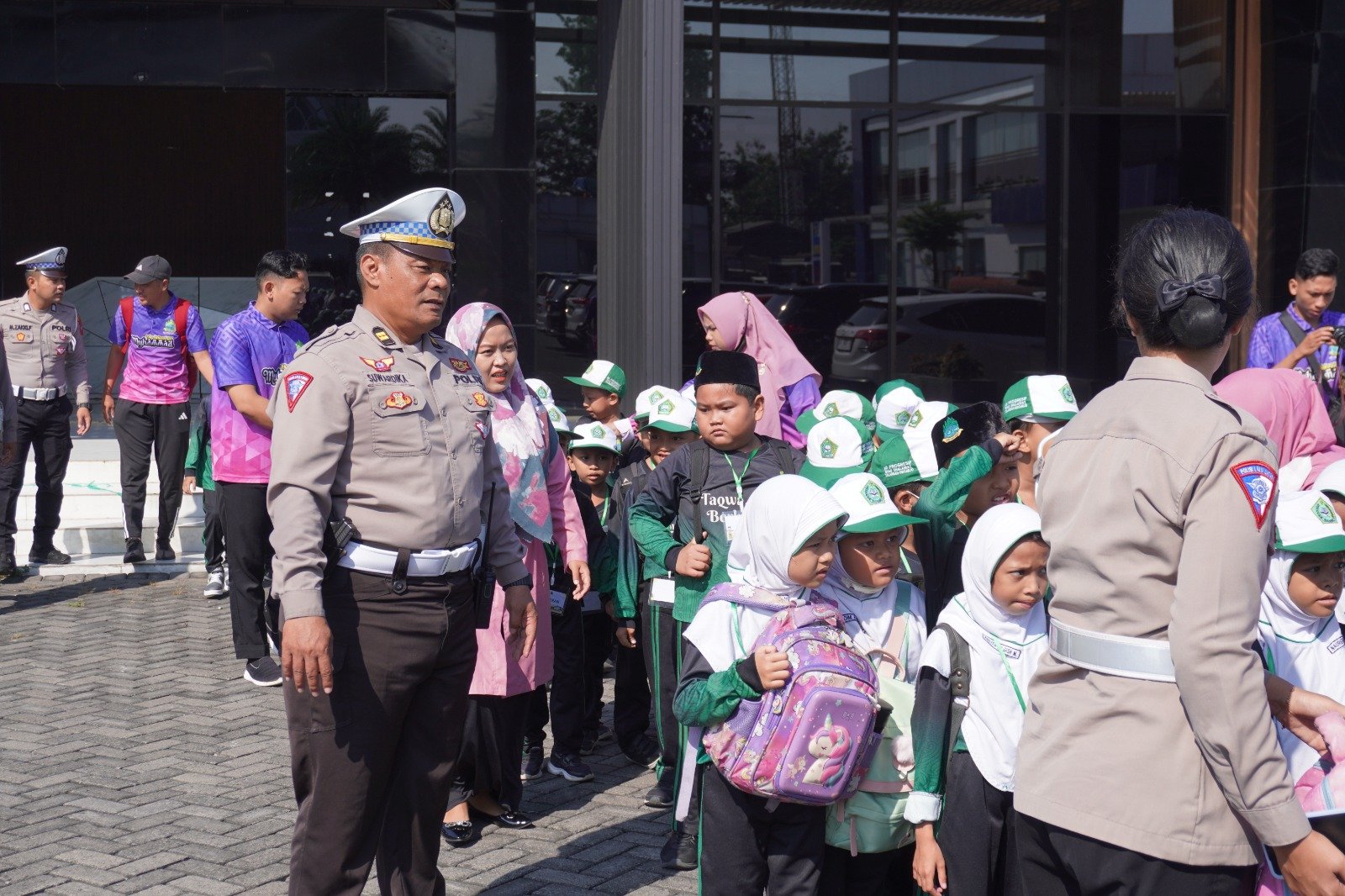 Tidak hanya mengenalkan tugas-tugas kepolisian, anggota Satlantas Polresta Sidoarjo kemudian mengajak anak-anak ke gedung Satlantas. Untuk diajak bermain serta mengedukasi mereka tentang peraturan tertib berlalu lintas.