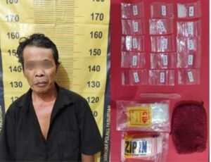 “Sedangkan dari pelaku TH(30) berhasil diamankan barang bukti berupa 1 (satu) kantong plastik yang berisi Sabu-Sabu dengan berat kotor 0,56 (nol koma lima enam) gram dan 1 (satu) buah HP merk OPPO warna biru,” lanjutnya.