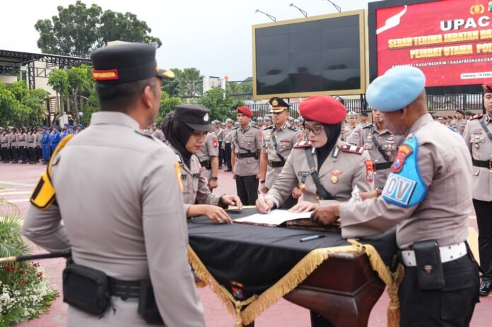 Beritanews9.id || SIDOARJO – Kapolresta Sidoarjo Kombes. Pol. Christian Tobing memimpin Upacara Serah Terima Jabatan (Sertijab) sejumlah pejabat utama dan pengukuhan jabatan Kasat Perlindungan Perempuan Anak (PPA) dan Pemberantasan Perdagangan Orang (PPO), pada Sabtu (14/2/2026) di Lapangan Apel Mako Polresta Sidoarjo.