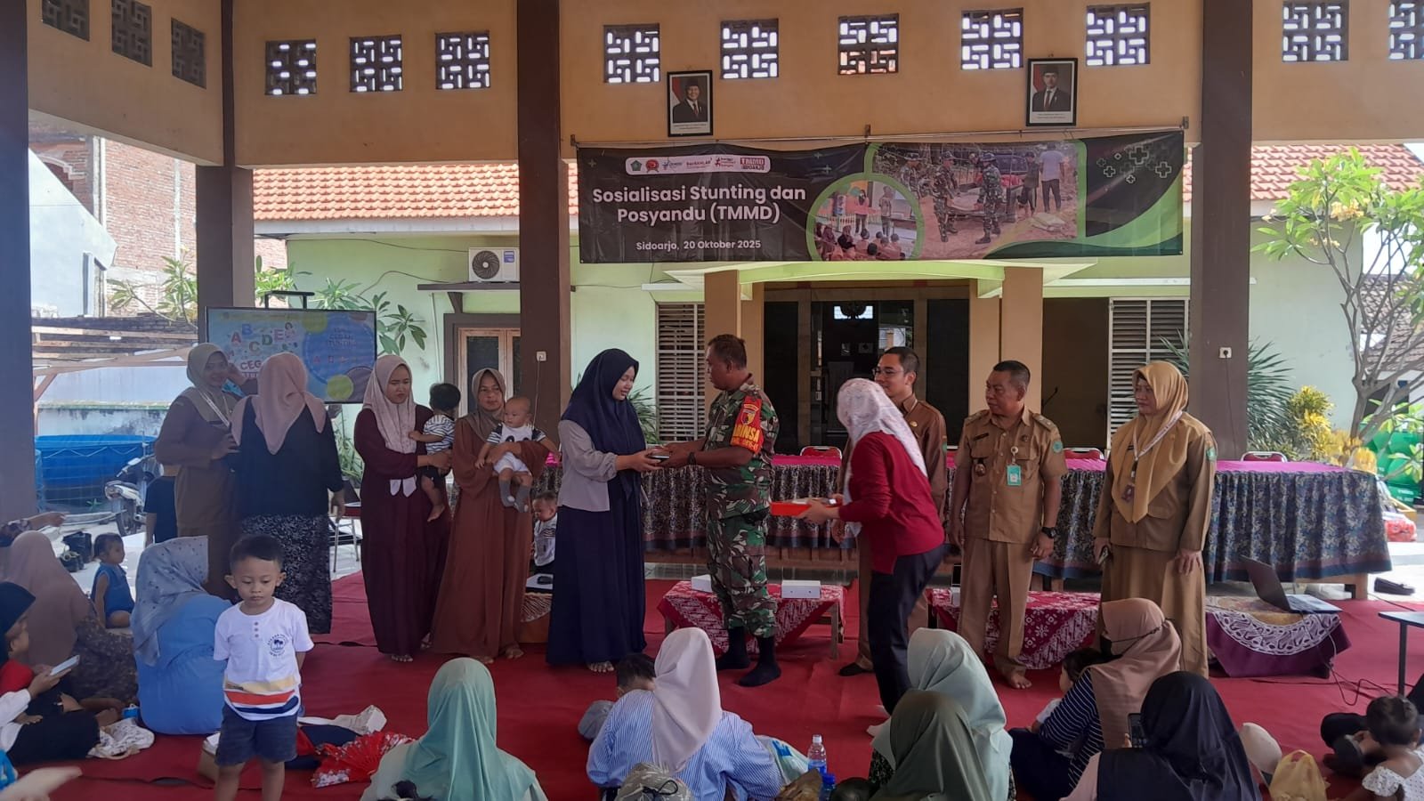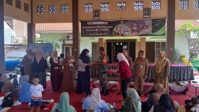 Beritanews9.id || SIDOARJO – Sebagai bagian dari rangkaian kegiatan TNI Manunggal Membangun Desa (TMMD) ke-126 Tahun 2025, Kodim 0816/Sidoarjo bersinergi dengan Dinas Kesehatan Kabupaten Sidoarjo dan Puskesmas Kepadangan Tulangan menggelar sosialisasi pencegahan stunting sekaligus pemberian makanan bergizi tambahan (PMT) di Desa Kedondong, Kecamatan Tulangan, Kabupaten Sidoarjo, Senin (20/10/2025).